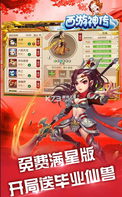 《西游神传》是一款2022全网最高破解福利版必玩的经典回合制手游!开局送毕业满星随机仙兽,次日打造毕业武器,签到3天送满星6星毕业神兽!GM商城海量资源1元宝无限购!