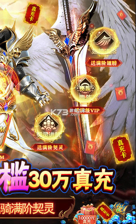 特权礼包:充值卡合成券*100、翅膀进阶羽*50、征授石*8