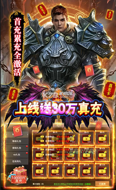 ★后缀说明:创角后,每天登录在线总共可领300000充值卡,充值卡可完成相应档位充值。