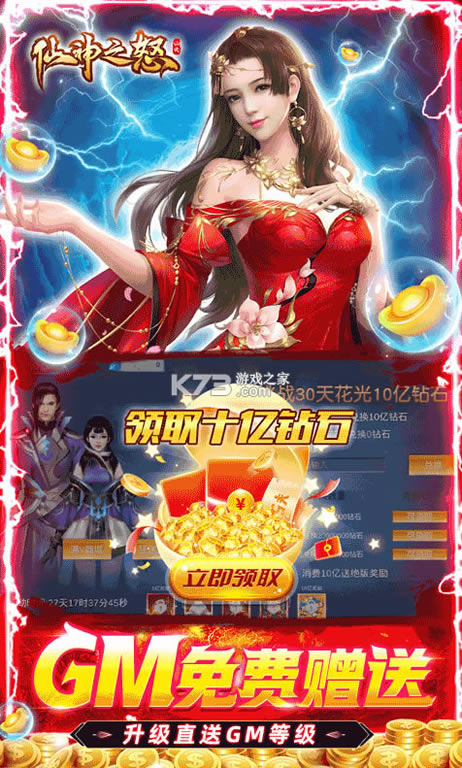 超绝国风奇幻仙侠大作《神之怒-GM免费直充》手游正式推出,我们邀请您挑战30天内花光10亿钻石大挑战再送您绝版奖励,上线在送满级VIP、元宝*100000、铜钱*1千万、钻石*1亿、100元实充点,更设有免费直充,货币资源想充就充,让你的修仙不在受困,更有极致精美的游戏画面,甜蜜浪漫的爱情故事让你置身于仙侠世界,快来一起体验成仙的快感。