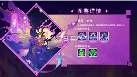 相对于过往的战斗,暗影龙不仅拥有三种形态,每一种形态的暗影龙还拥有三种随机性格。性格不同的暗影龙其行动方针和怪物布阵也会有所不同。暴躁性格的暗影龙,擅长群体伤害,但是缺少封印和回复能力;孤僻性格的暗影龙则擅长控制和清宠,更倾向于应对高威胁单位;稳健性格的暗影龙则喜爱攻守并重,而且拥有强大的回复能力。玩家需要第一时间了解对应暗影龙的性格,并制定出合适的方案,才能赢得战斗的最终胜利!