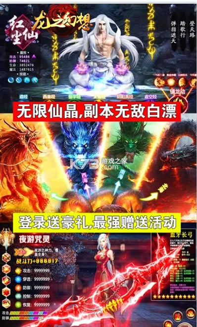 《龙之幻想》送首充上线赠送GM1,不花一分钱就能够享受,福利1元商城即可,具有超高超爽翻天的魅力,顶级装备全部都送充值,人和灵仙三界来袭,独创的宠物,体验开盲盒的感受,最新福利来袭,灵宠全部都送。