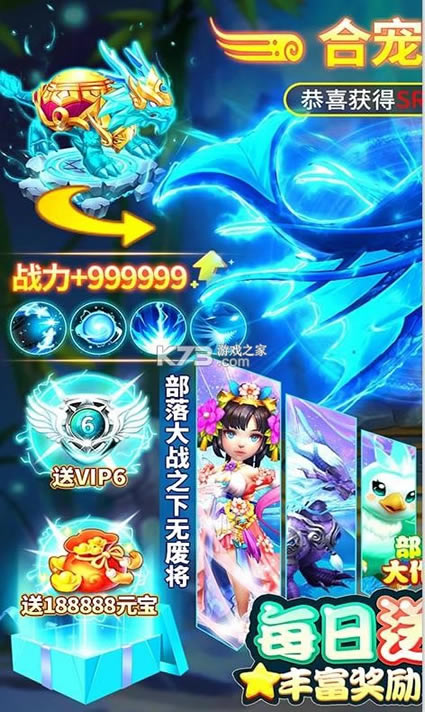《部落大作战-异兽无限抽》【山海经异兽录放置卡牌+策略+部落战】瞩目登场,登录送——VIP6~!送极品红将【金角鲲、白泽】~!188888元宝,200W铜钱!还有海量福利活动~~!每日送连抽,部落大战之下无废将,土豪难敌群攻,丰富奖励拿到手软!八天登录送豪礼,大量连抽,元宝,炫酷坐骑6选1,神级红装自选,战力飙升爽翻天,零氪不掉队,轻松好上位。