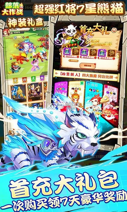 ★首充大礼包,一次购买领7天奖励,更有超强红将7星熊猫、神装,【凶、圣、妖、人】四大族裔,同台比拼