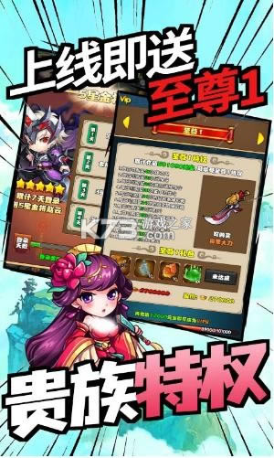 上线送至尊VIP1 升级得2W充值卡 金将赵云 赠送188888元宝、100W银币 一套橙装、进阶丹*5000、丁级经验书*100、丙级经验书*200、乙级经验书*50、甲级经验书*50