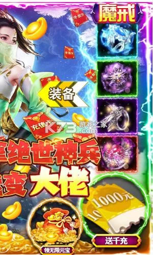 《幻灵仙境-送千充万抽》是一款修仙类手游,在游戏中可以收集各种奇珍异宝提升战力,游走于天地间伏妖除魔。创角背包自带1000元充值卡礼包,在线时长累计送万抽。每天上线登录就送100万元宝,首次登录大礼送1亿铜钱!!!福利资源拿到手软,只要努力0氪也能变大佬。激爽战斗快感, 翅膀/坐骑/时装/变身/魔戒/仙侣各种玩法数不胜数,快来一起狩猎BOSS。