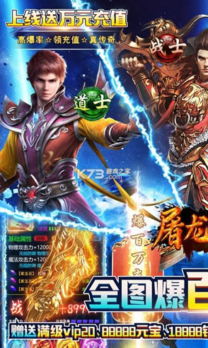 《屠龙兄弟-爆百万充值》是一款正版授权全新三职业传奇大作!上线赠送满级vip20、元宝*88888、钻石*18888、铜币*8888万、李小龙服饰*1、探宝钥匙*20,主线送充值、登录送充值、升级再送充值,BOSS无限爆百万真充,刀暴击刀刀光柱,0氪也霸服!