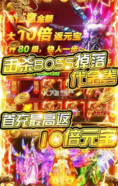 2.充值比例1:1000(元宝),首充最高十倍元宝返利