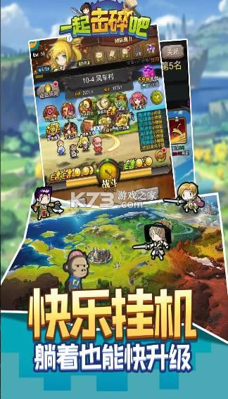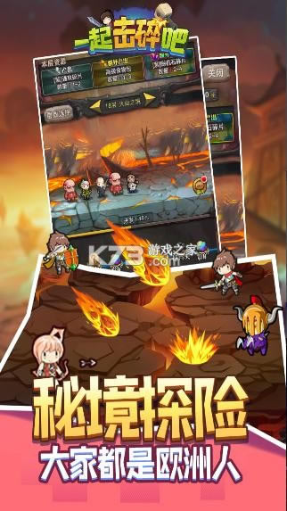 《一起击碎吧》汇聚超人气的游戏角色,酣畅淋漓的爽快感,闲暇之余的游戏乐趣,超多的职业选择,随意的切换,多样的玩法,勇者上阵为你战斗,加大队伍的战斗力,无限收集各路英雄大集结,一起来击碎冒险的世界。