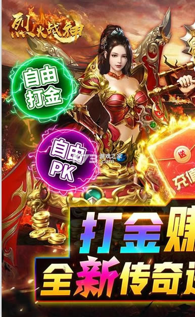《烈火战神》创角送超时装的特效,自由的打金送真充,激活所有的福利,交易自由赚取元宝和极品道具,boss免费无限打,神翼免费无限升级,免费抽取真充福利,传世神装无限送,自由打金自由pk,加入全新的传奇世界中。