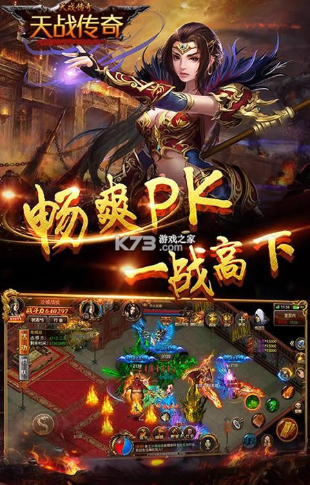 《天战传奇》一款经典杀金猪狂爆充值三职业传奇mmo手游!玩家可以任意扮演战、法、道等职业,体验激战BOSS,爽快PK等酣畅淋漓的游戏玩法。击杀boss可获得大量红包。