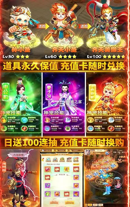 2021超人气封神题材手游《哪吒闹海-万充连抽换金》全新版本火爆上线。上线即送VIP13,绑元宝88888,1000万银两,专属称号。结合唯美绚丽的美术风格、优雅动听的背景音乐、独特多样的坐骑宠物、炫酷华丽的战斗特效,无不在刷新你对回合制游戏的认知。游戏登陆即送万元充值卡,每日还可免费领取100连抽,做任务再送100连抽,充值卡免费兑换。另开局输入礼包码CW666、SZ888,还可领取时装·甜蜜童话+神宠·六耳猕猴。你将生处妖魔纵横之乱世、开启热血的诛妖之路、参与征伐纣王的旷世之战。感受人、仙、魔三界魅力,斗天地镇众妖,开启属于你的封神传说。
