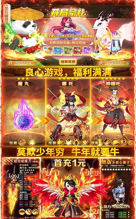 首充礼包:绑元*18888、宠物-姜子牙*1、宠物进阶丹*50