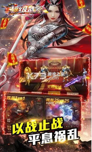 《超级武器》三国乱世的世界中挑战,开局就送超级武器百万元宝和绝版时装,签到打怪领充值,极品掉落一键回收,上线领V和百万元宝,充值卡随心所欲的开启掉落,一秒五刀,刀刀光柱,在战场上来平息祸乱。