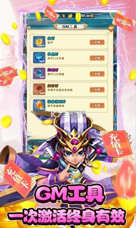《方块创造-GM在线送充》是一款东方神话风格的挂机卡牌类游戏,诸多神话人物化身神将,任您收入麾下,为您构建一个成为封神英雄的舞台!游戏内包含多种阵容搭配,丰富的日常活动玩法。