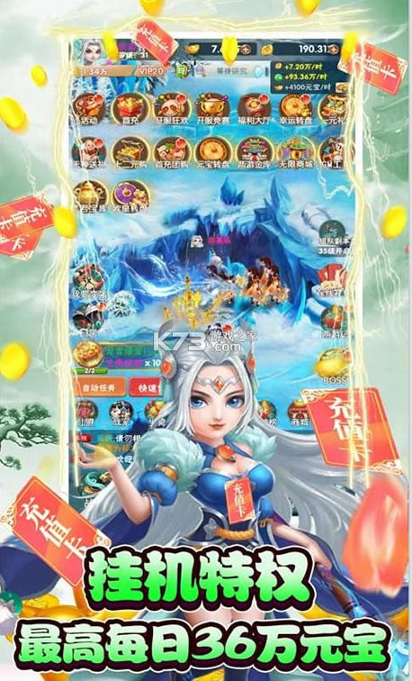 ★上线赠送VIP20,288888元宝,1亿金币,10张封神录;