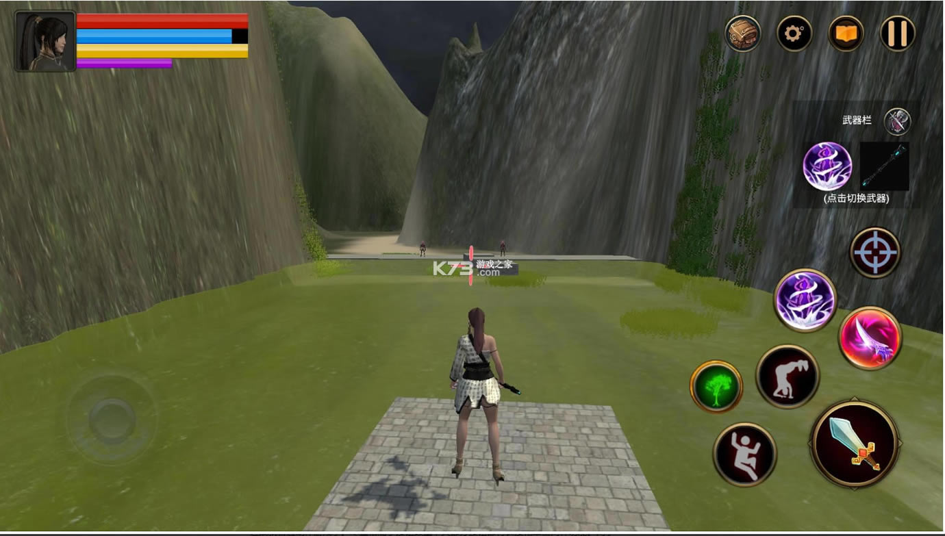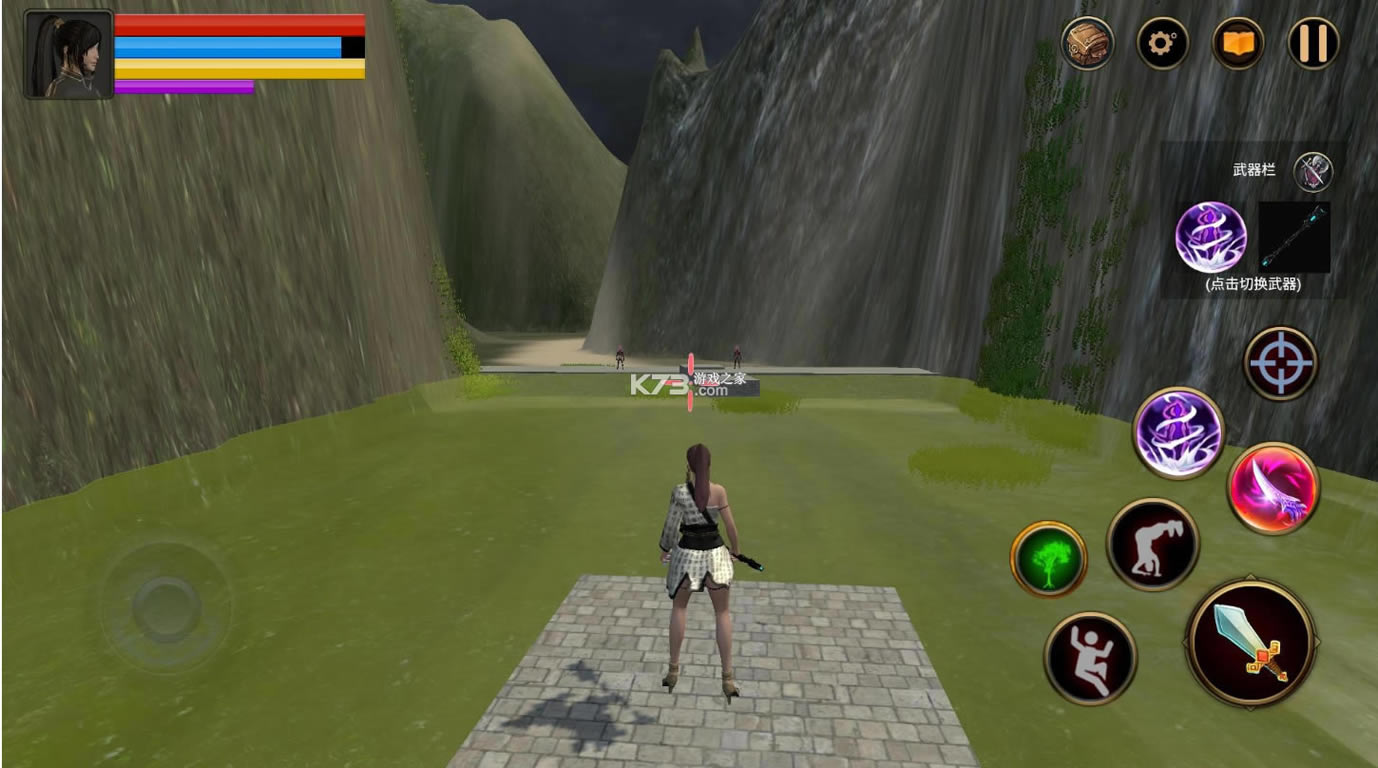 第三人称冒险游戏,有近战和远程两个角色。远程操作类似射击游戏,可以瞄准释放法术。近战就普通动作游戏了。尽量精简了按钮数量,大部分按钮都有长按和单击两种功能。两手各有四个栏位,可以防止物品,单击武器栏快速切换。左手只能放置辅助性物品,如各种药品。使用药品需要切换使用。右手只能装备主攻击武器,可以放四个,随意切换。
