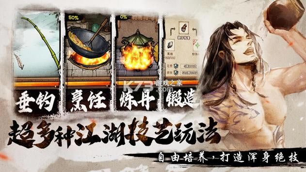 行走江湖者,必身怀绝技也。除了一身武艺,你还将学会各种日常技艺,钓鱼酒艺炼丹庖丁锻造…所有你想学的古老技艺,这江湖都有!