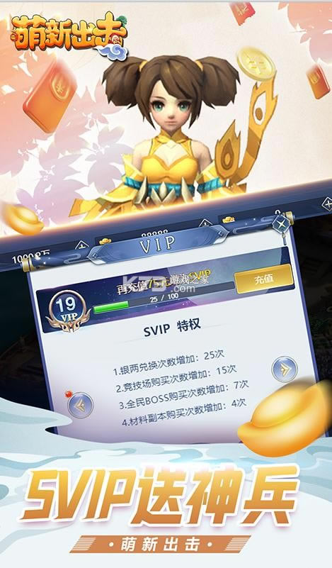 《萌新出击-送月卡神宠》是一款以挂机及激爽战斗为核心的回合手游。上线免费激活月卡,升级就送神宠,登录送百万元宝,不肝不氪轻松游戏。游戏画面精致,玩法多样,造型百变,流光酷炫。跨服战场,战个痛快。竞技PK,胜者为王。上百种称号,等你获取,号令天下。稀有宠物轻松捕捉,看上哪个抓哪个。九重天争霸,刺激畅爽,集结各路英雄齐来战。千层宝塔,材料多多,只等你来玩哦!