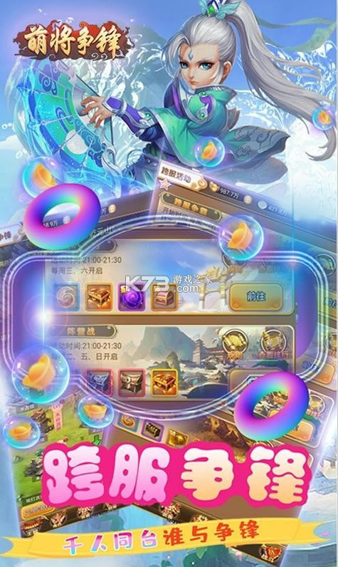 《萌将争锋》以仙侠唯美的美术风格,封神人物各个化身为神将,收录到麾下,独特的社交系统,上线就送真充和真抽,上线送满v,海量福利免费得,还有更多丰富的好礼,将各个爱将带回家,跨服争霸,谁与争锋。