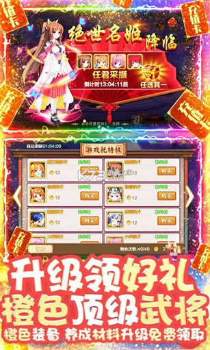 ★升级领好礼,极品神器、橙色顶级武将、橙色装备、海量养成材料升级免费领取