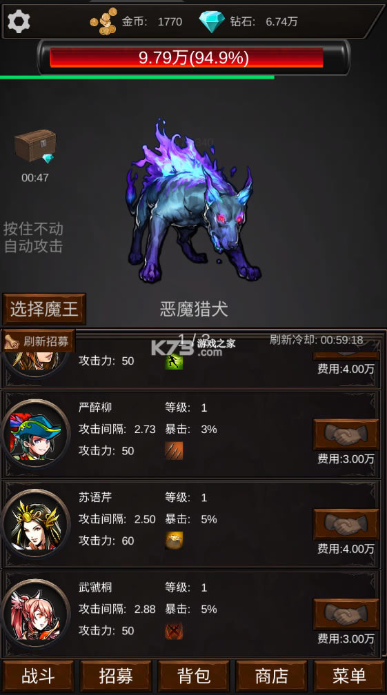 3、每个关卡中的怪物都是不同的,它们的力量也不同,会给你带来更多的压力。