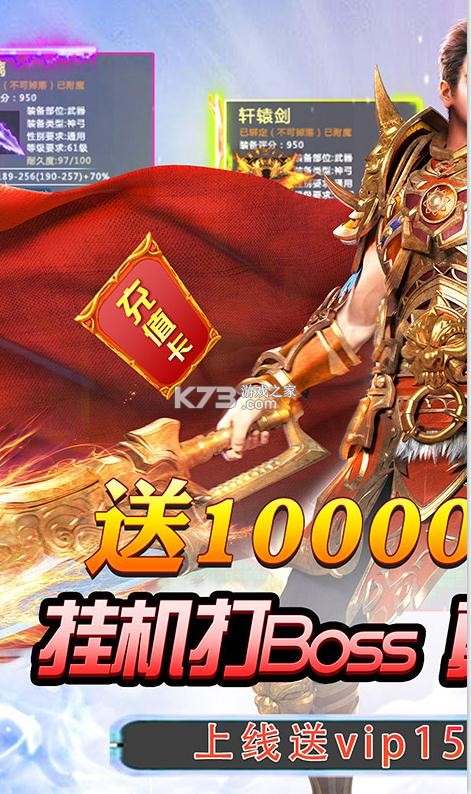 ★上线送vip15,元宝*10w,金币*10000万,再送绝版高阶神兽