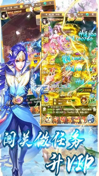 打败其他玩家获得稀有奖励,占据排行榜受万人敬仰!VIP上线就送,闯关能升级VIP,海量VIP福利随手领!更能学酷炫神通技能,全屏输出伤害爆表。