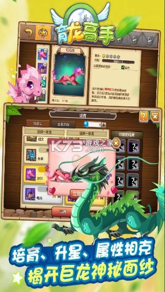 打破游戏的单一性,涵盖了策略、自由养成、模拟经营、休闲娱乐等众多玩法集一身,打造龙境仙踪、挑战赛、争霸赛、实时PK抢夺等众多实时互动玩法,大大增添了游戏乐趣。在育龙高手游戏中,玩家将化身成为一名驯龙高手,拥有八大属性神龙,自由收集、自主培养、升星等多种培养方式,等玩家自由养成各种各样的神龙宝贝,打造最便捷易上手的模式,让玩家可以享受最畅爽的模拟经营体验。