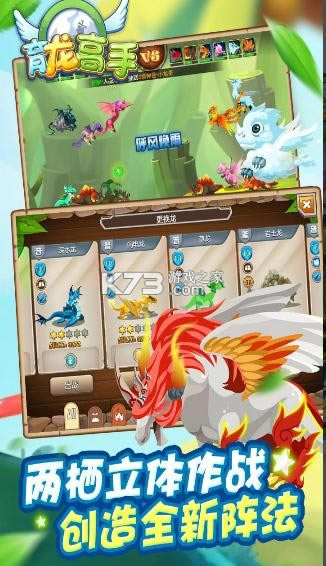 游戏中具有多龙境仙踪、驯龙挑战、以及血战到底等多种副本玩法,小龙成长之后就可以带着他们一同闯荡神龙大陆啦!您可以组建自己的龙族大军,通过搭配不同的阵型和属性,强化自己的巨龙,打败一切阻碍你的敌人!