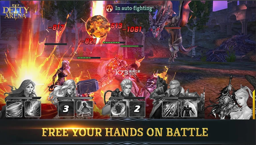 [组合技能]不同的英雄技能策略和多个英雄阵容会造成不同的组合伤害。当遇到老板时,你可以点击女神肖像来触发全屏大动作,可以造成超高的伤害来扭转局面,赢得战斗!