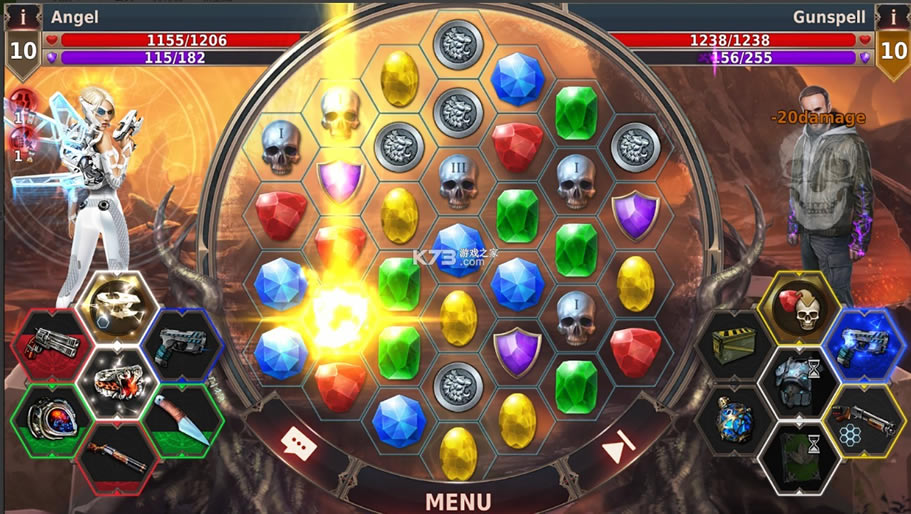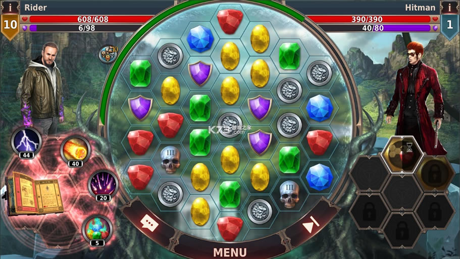 游戏:这是一款独特的RPG益智游戏,您可以在充满头骨,宝石和珠宝的漂亮六角板上玩回合制Match-3决斗。