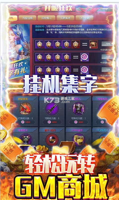 ★挂机集字换GM币!劲爆GM商城,兑换稀有外观道具和现金卡