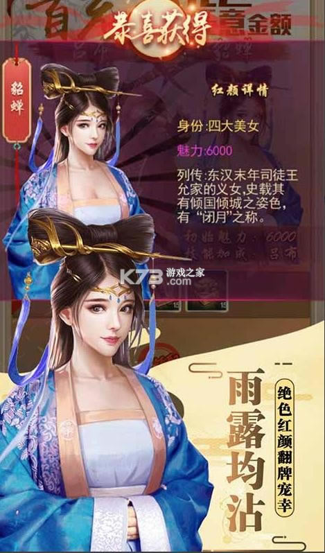 妻妾系统:燕瘦环肥各色美人任君选择,升级系统:多种升级方式提升门客属性。