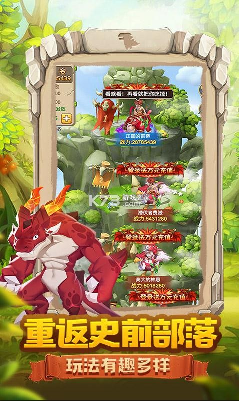 重回探险,荣耀回归!《疯狂酋长-送万元充值》正版授权原始题材回合制手游,携万元充值壕礼福利来袭!开局升级送1000元福利,登录再送万元充值,免费升级满级VIP,全新超爆福利助力少年探险原始时代!各个伙伴自由召集,在原始部落之间,为了争夺资源领地,进行征战。萌宠集结,游戏内可驯服百种动物,点击方寸之间打造最强战队,一起踏上未知而精彩的冒险旅程。策略、建造、捉宠、驯服、宠物打书、竞技PK等玩法应有尽有,进入游戏即可一起畅爽神秘冰川世界。