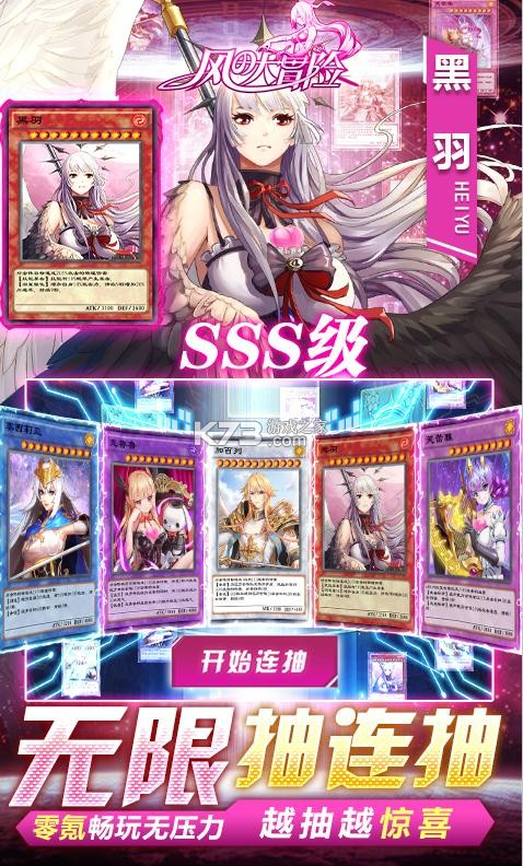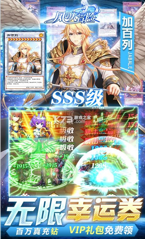 《风之大冒险-0氪领真充》是一款卡牌放置冒险游戏,拥有超过百位高颜值英雄,耀光、永夜、混沌三族大乱斗!萌娘、御姐、萝莉、帅哥,总有一款打动你!以激萌颜值暴击全场!无需担忧因战力不足而无法继续前进,更不必担心会因战力要求影响你的体验。因为轻松休闲的全自动挂机系统让你躺着都能赢!打不过没关系,睡一觉再来,轻松养成无压力!游戏中战斗充满策略性,并不是无脑堆叠数值。三族英雄相互克制,种族搭配能极大提高团队属性,特定英雄组队还能释放组合技!瞬间秒杀!