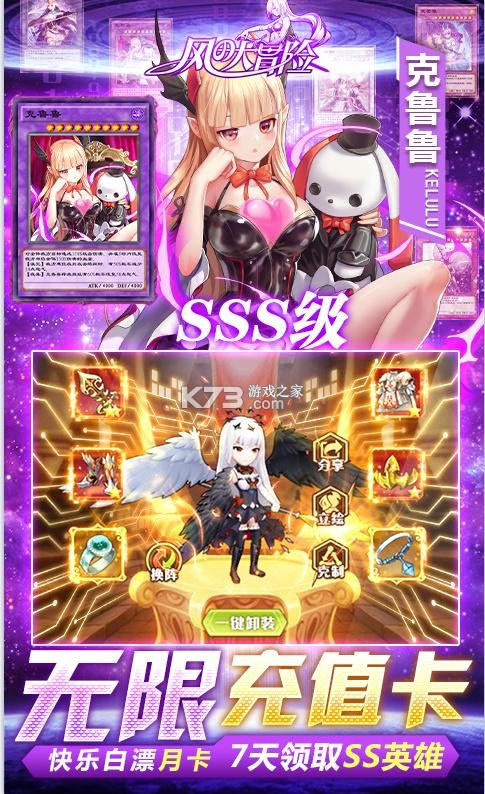 是一款卡牌放置冒险游戏,拥有超过百位高颜值英雄,耀光、永夜、混沌三族大乱斗!萌娘、御姐、萝莉、帅哥,总有一款打动你!