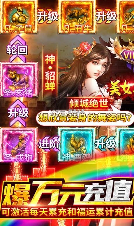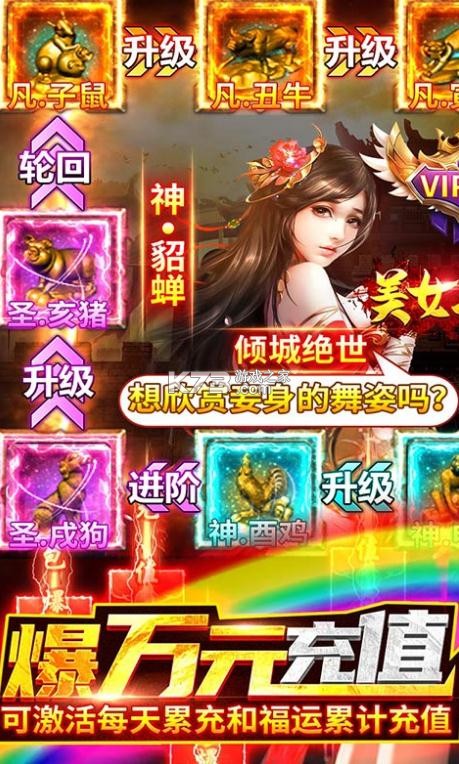 ★爆万元充值卡,增加对应的钻石和VIP经验,可激活每天累充和福运累计充值,看看就觉得很激动了
