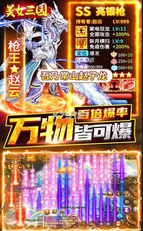 《美女三国爆万元充值》是一款三国题材卡牌对战类游戏,游戏内的场景画风非常好看,人物设计的也都很好,每个三国武将都有独属于自己的特色的技能动画