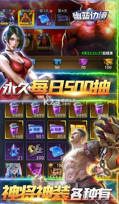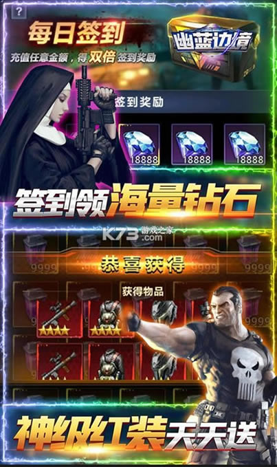 《幽蓝边境》免费开启GM商城,天天豪礼免费领,在这里耐玩就送万元充值卡,天天免费领,首充都白送,神将神装都有,每天送500抽,每日签到送海量的钻石,来就送,遍地红装上线领取。
