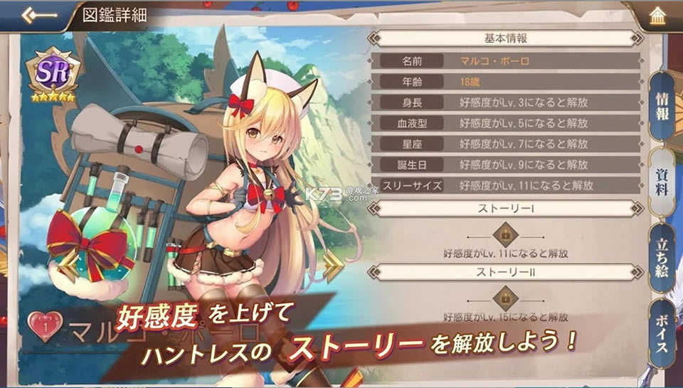 将您喜欢的无狩猎女孩设置为招牌女孩,并享受与她的各种对话!当喜欢的程度很高时,将释放无狩猎女孩的超可爱站立图片,声音,故事等!从个人系统给您最喜欢的孩子一份礼物,以进一步加强这个无狩猎能力的女孩!