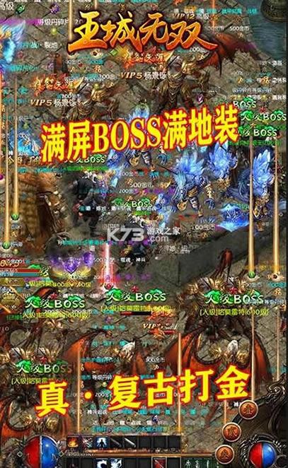 丰富多样的刷BOSS玩法,玩家可以体验游戏的快感传承了经典RPG的自由PK、BOSS战、高概率掉宝等特点。