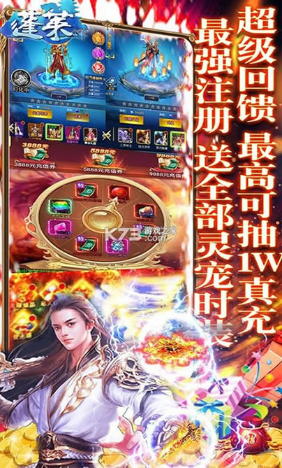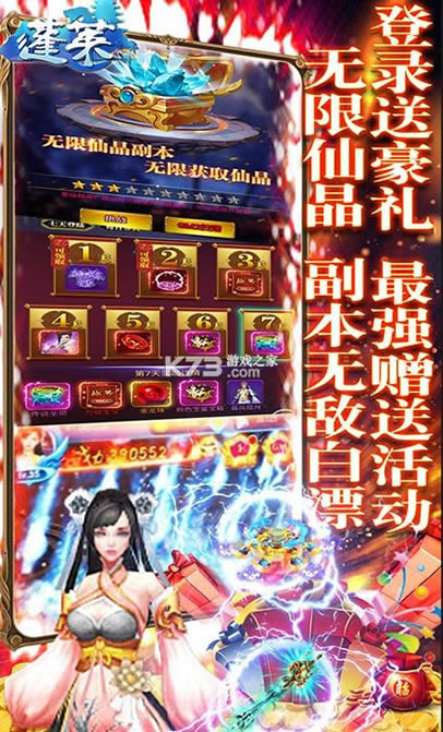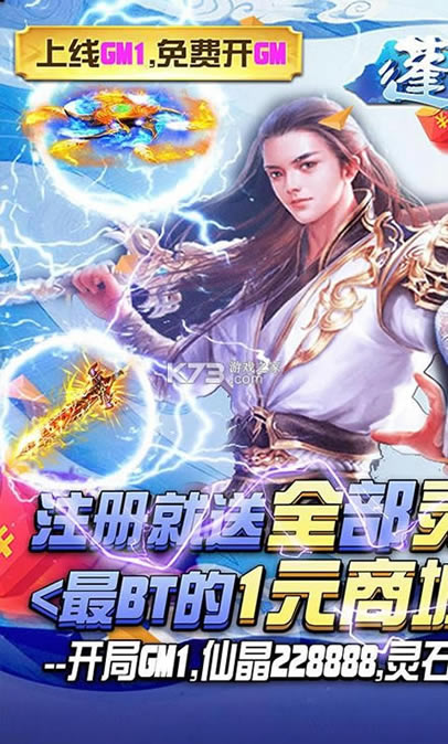 ★首次充值1:50000!上线赠送GM1,仙晶*22.8W、灵石1亿,免费购买商城道具!