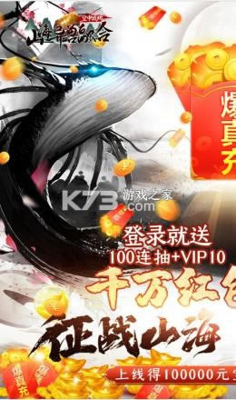 ★上线送vip10、10万元宝、1000万铜币、100连抽。