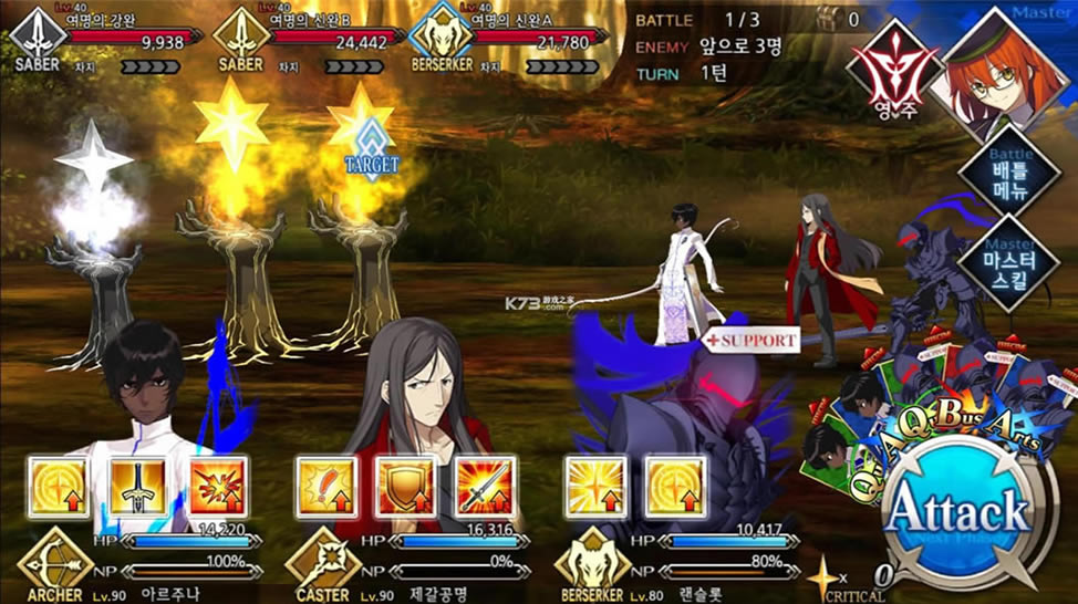 《FGO》忠于日本正统RPG的玩法,通过对从者下达的命令,用指令卡来表现,并通过回合制的形式展开战斗。玩家将能再次欣赏各项宝具发动的经典画面,回味fate系列的感动。