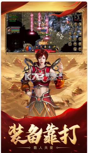 自由PK,体验杀戮快感,练级、打宝只为站在沙巴克的城墙!新增多种玩法:夺宝奇兵、盘古之地、皇族秘宝,增加不一样的感受九种职业组合、六大合击技能,首领刷不停,装备全靠打,散人打金,土豪激情