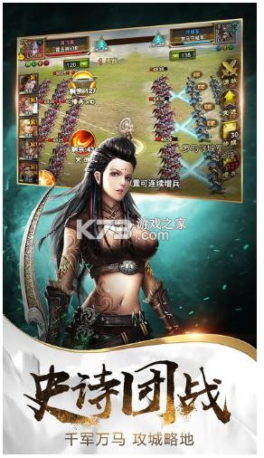 独创玩法,专为恋战用户定制,全天24小时无处不战,带上兄弟一起痛快杀敌,宣战帝国城池,成就一翻霸业,近百名将领出战,各类兵种搭配,变化繁多,让战场更多无限可能性,从没有无敌的阵容组合,但有相生相克的摆阵