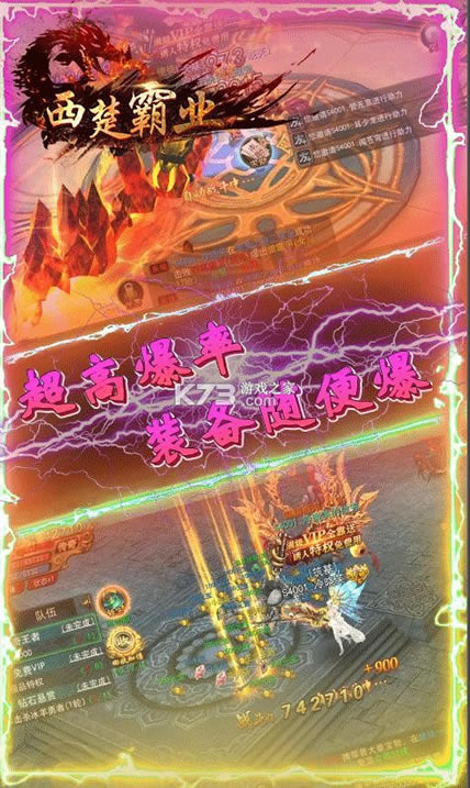 《西楚霸业》百变高爆概率,保留了最经典的游戏玩法,在这里装备都靠打,寻找昔日兄弟一起作战,精致趣味的玩法,带你重回记忆中的玛法大陆,装备全靠打,百分之百的概率,全屏掉落秒回收,开局送神装自由选择,福利多多,红包丰厚,每天来领取超多红包。