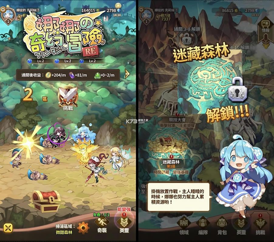 没时间一关一关烧脑通关?没关系,《娜娜的奇幻冒险RE》还准备了【自动】功能轻松通关,通关后就算离线再久,上线依然有资源奖励可领取喔!