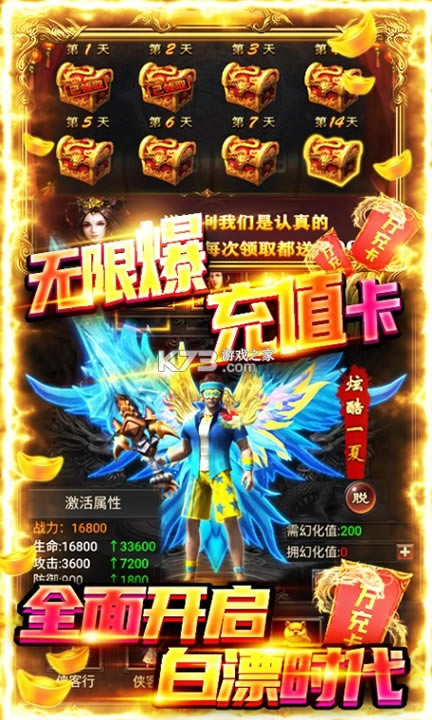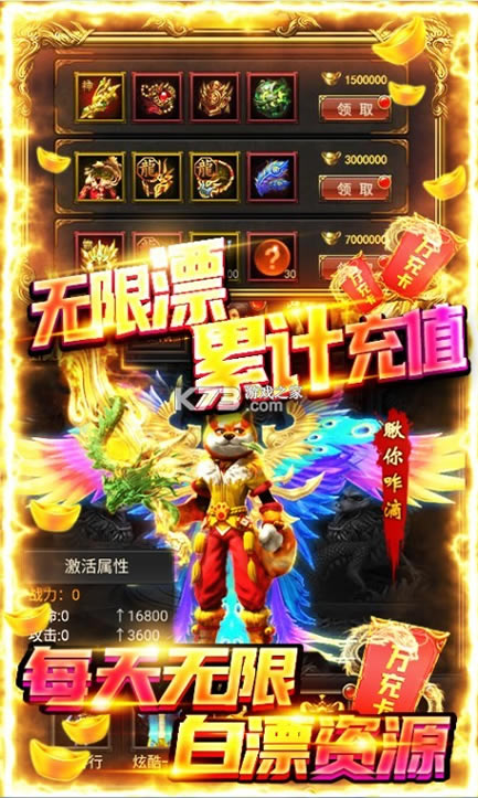 ★上线就送VIP15,88888元宝,在线领取万元充值豪礼!无敌的爽快体验!